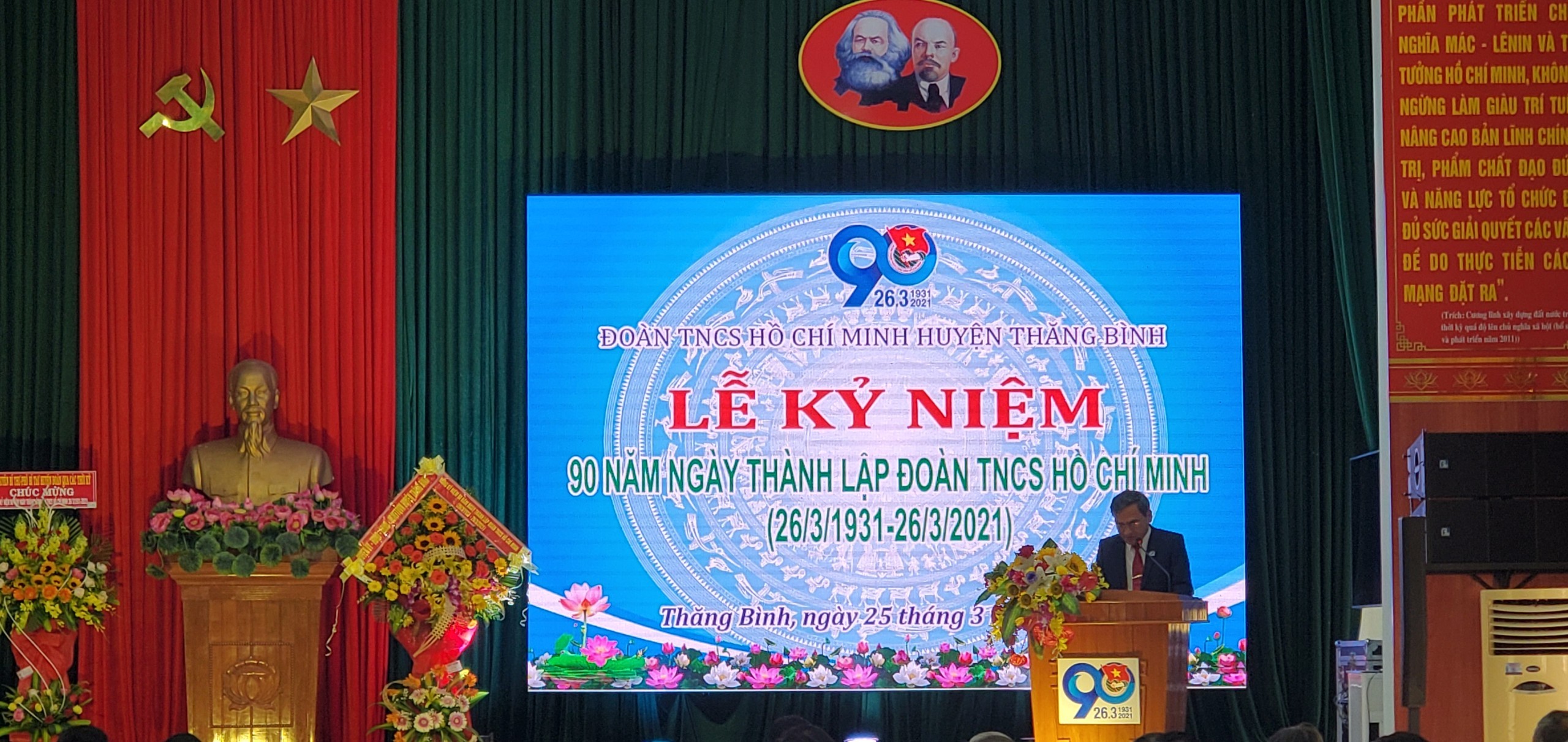 Phát biểu tại lễ kỷ niệm, đồng chí Phan Công Vỹ - TUV, Bí thư Huyện uỷ, Chủ tịch HĐND huyện ghi nhận, biểu dương và chúc mừng những thành tích các cấp bộ đoàn, đoàn viên, thanh niên huyện nhà đã đạt được trong thời gian qua. Đồng chí đề nghị các cấp bộ đoàn trong huyện phải quan tâm, khuyến khích, tạo điều kiện cho thanh niên khởi nghiệp, lập nghiệp; động viên, thu hút đông đảo đoàn viên, thanh, thiếu niên tham gia học tập, lao động, phát triển kinh tế - xã hội.