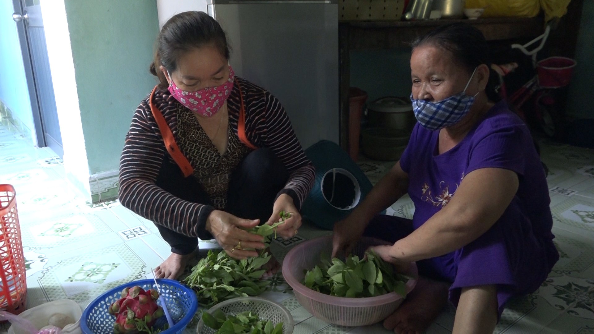 (Ảnh: Chị Thiết phụ nhặt rau giúp cho bà Côi)
