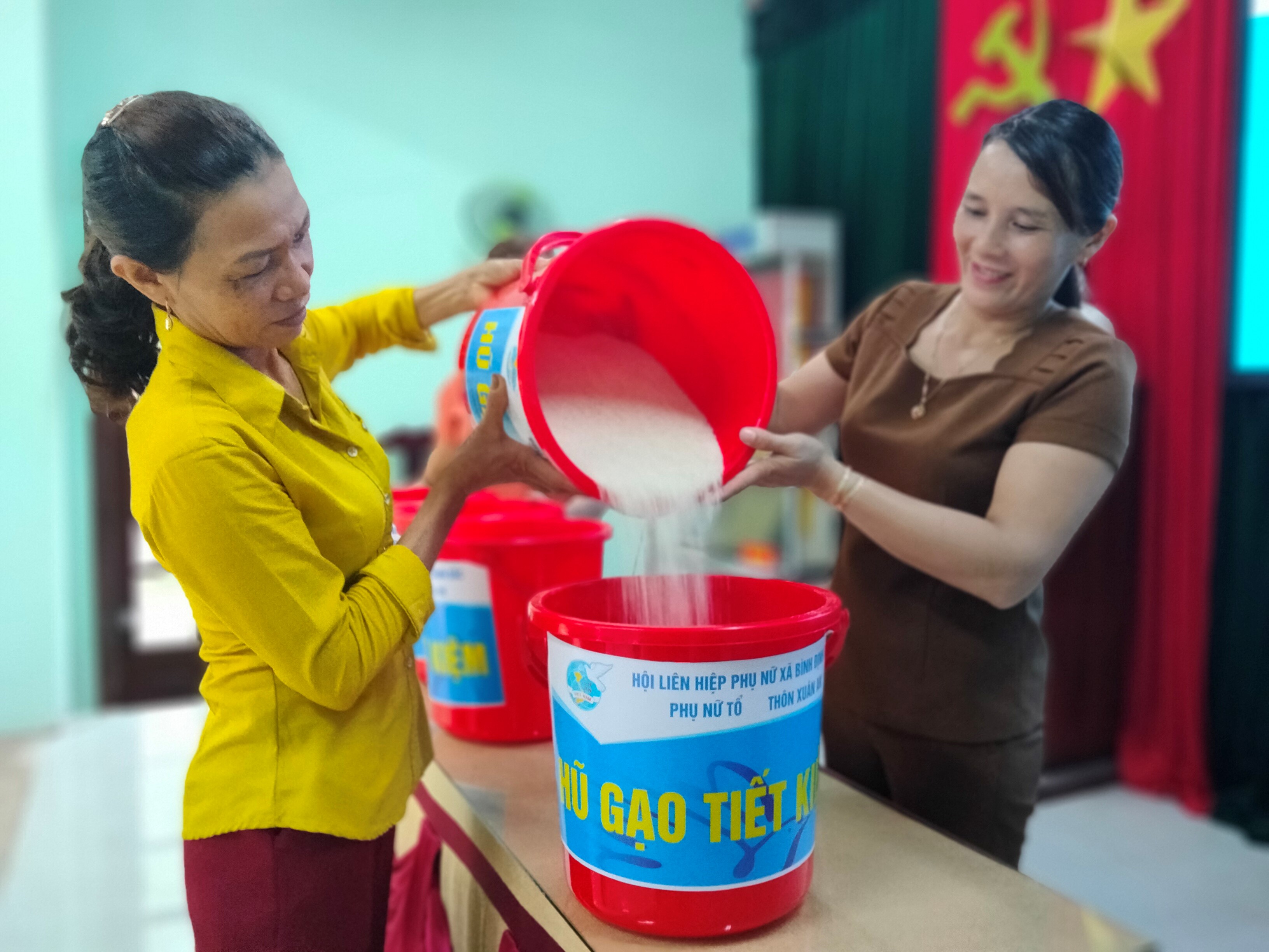 (Ảnh: Hũ gạo tiết kiệm tại xã Bình Định Bắc)
