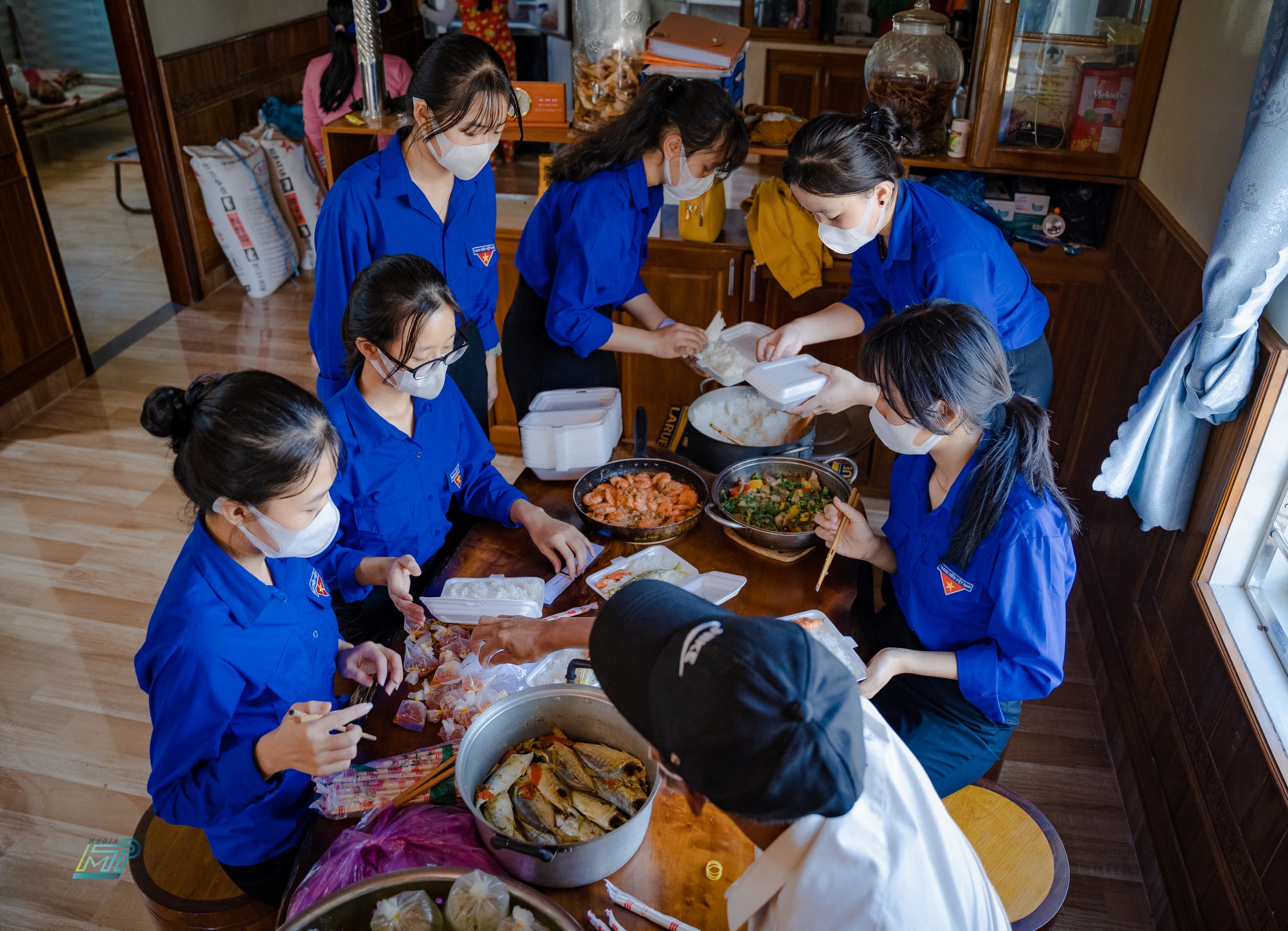 (Ảnh: ĐVTN tham gia nấu ăn ủng hộ tại Khu cách ly xã Bình Dương)
