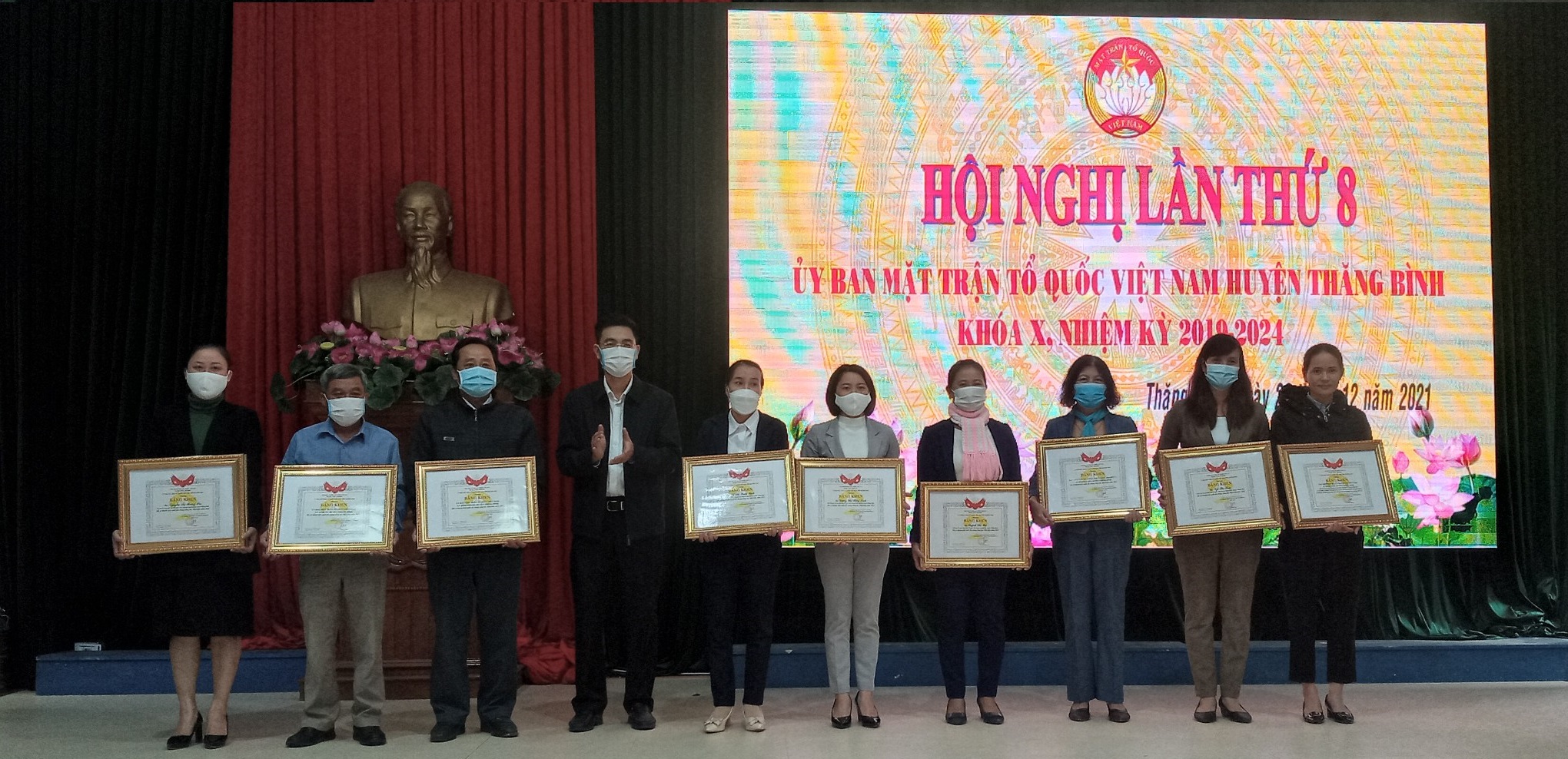 Dịp này, Ủy ban MTTQ Việt Nam huyện Thăng Bình đã khen thưởng cho 17 tập thể và 11 cá nhân có thành tích xuất sắc trong công tác Mặt trận năm 2021 và khen thưởng cho 12 tập thể có thành tích trong công tác phòng, chống dịch bệnh Covid-19.