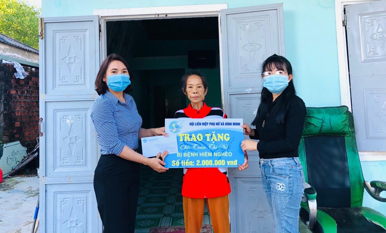 (Ảnh: Hỗ trợ tiền giúp đỡ cho gia đình phụ nữ bị bệnh hiểm nghèo tại thôn Tân An)
