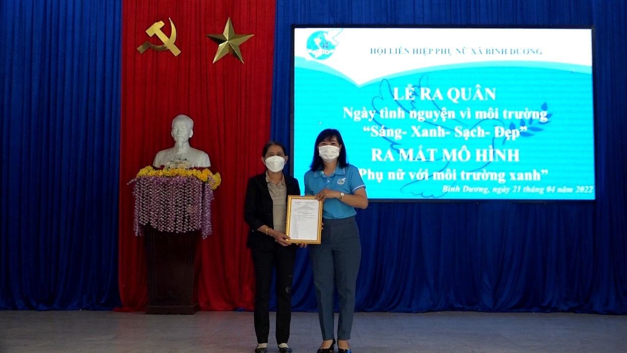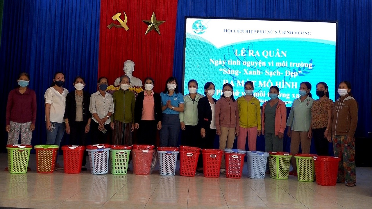 Mô hình “Phụ nữ với môi trường xanh” được thành lập với 20 thành viên tại tổ 7, thôn Nam Hà, xã Bình Dương. Mục tiêu của mô hình là xây dựng cảnh quang sáng – xanh – sạch - đẹp trên tuyến đường thuộc tổ 7, thôn Nam Hà. Các thành viên tham gia mô hình có trách nhiệm bảo vệ, xây dựng cảnh quang trên tuyến đường và phản ánh cụ thể, thực tế các hành động gây ô nhiễm môi trường để có biện pháp chấn chỉnh kịp thời.