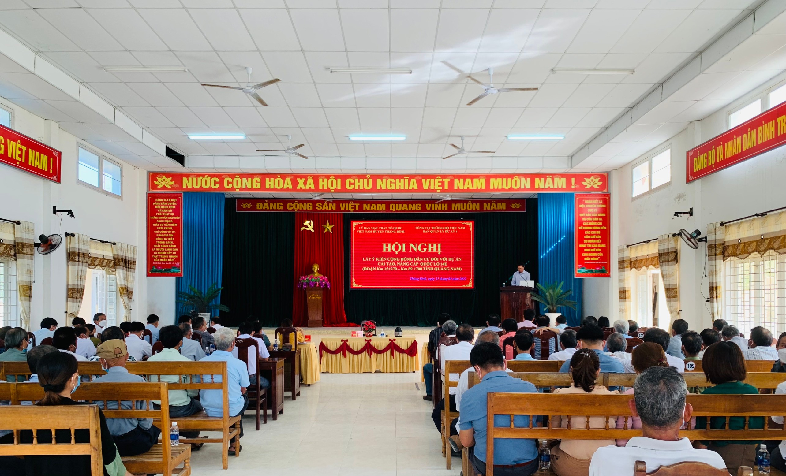 Tại Hội nghị, đại diện ban quản lý dự án 4 thuộc Tổng cục đường bộ Quảng Nam đã thông tin đến các hộ dân về chủ trương đầu tư và các nội dung của Dự án cải tạo, nâng cấp Quốc lộ 14E (Đoạn Km 15+270 - Km 89+700 tỉnh Quảng Nam). Qua đó, hội nghị đã nhận được 5 lượt ý kiến tham gia của người dân, đa số các ý kiến đồng tình và thống nhất cao với chủ trương của dự án, tuy nhiên người dân cũng đề nghị đại diện ban quản lý dự án làm rõ và quan tâm đến các vấn đề khi triển khai thực hiện dự án như: Chính sách về bồi thường, hỗ trợ, tái định cư; việc áp dụng giá bồi thường; việc đảm bảo thoát nước tại những đoạn đường thường xuyên bị ngập úng vào mùa mưa; đặc biệt phải đảm bảo về chất lượng mặt đường khi triển khai dự án. Tất cả các ý kiến, kiến nghị của các hộ dân trong vùng dự án sẽ được UBMTTQVN huyện tổng hợp gửi cấp thẩm quyền theo quy định.