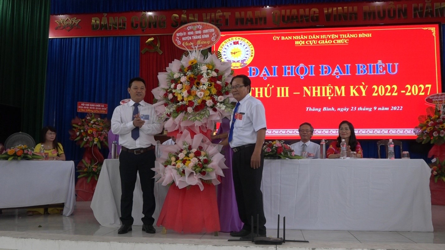 (Ảnh: Đồng chí Trương Công Sơn – Phó Chủ tịch UBND huyện tặng hoa chúc mừng Đại hội)