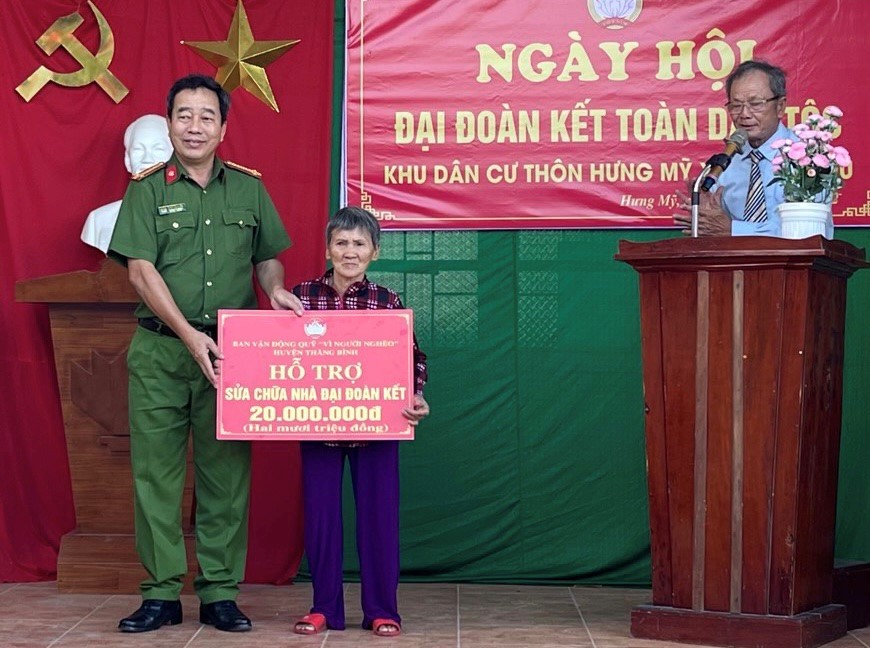 Tham dự ngày hội, đồng chí Nguyễn Công Min-HUV, Chánh án Tòa án nhân dân huyện đã trao biểu trưng hỗ trợ xây mới nhà Đại đoàn kết cho 1 hộ nghèo, 3 xuất quà cho hộ nghèo từ nguồn hỗ trợ của Ban vận động Quỹ Vì người nghèo huyện.