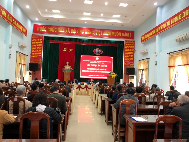 Trong năm 2022, Ban Thường trực Uỷ ban MTTQ Việt Nam huyện phát huy tinh thần đoàn kết, sáng tạo, thực hiện tốt nguyên tắc tập trung dân chủ bám sát chương trình, kế hoạch và hướng dẫn của Ban Thường trực Uỷ ban MTTQ Việt Nam tỉnh, cùng với cấp ủy Đảng, chính quyền phấn đấu xây dựng và phát huy sức mạnh khối đại đoàn kết toàn dân; qua đó góp phần hoàn thành các nhiệm vụ, mục tiêu kinh tế-xã hội, đảm bảo quốc phòng-an ninh trên địa bàn huyện. Trong năm 2022, Mặt trận huyện phối hợp hỗ trợ xây dựng, sửa chữa 95 ngôi nhà cho hộ nghèo, cận nghèo với tổng kinh phí là 2,485 tỷ đồng. Công tác tập hợp các tầng lớp Nhân dân được triển khai thực hiện hiệu quả, tạo sự đồng thuận cao trong các giai tầng…