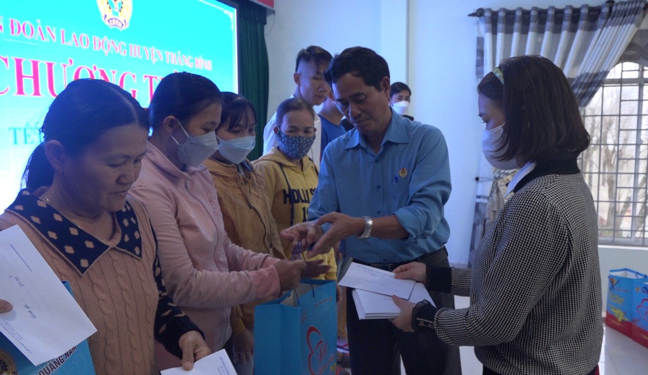 Tại chương trình, LĐLĐ huyện trao 20 suất quà của LĐLĐ tỉnh, mỗi suất 800.000 đồng và phần quà trị giá 200.000 đồng; 23 suất quà của LĐLĐ huyện. Trước đó, LĐLĐ huyện đã cấp về công đoàn cơ sở (CĐCS) Công ty TNHH may mặc OneWoo, Công ty TNHH Domex Quảng Nam, Công ty TNHH Peak OutDoor, Công ty TNHH Hoằng Tiệp, Xí nghiệp may Ánh Sáng 2… gần 800 suất để các CĐCS trao cho các đoàn viên có hoàn cảnh khó khăn.