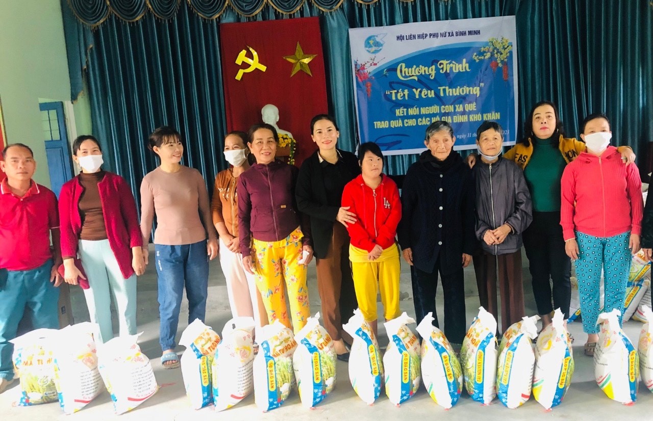 Hội LHPN xã Bình Định Nam phối hợp với Hội Chữ thập đỏ xã tổ chức Chương trình “Tết nhân ái – Xuân Quý Mão 2023” đã vận động các nhà hảo tâm trao 100 suất quà,, mỗi suất trị giá 300.000 đồng gồm các nhu yếu phẩm cho 100 hộ nghèo, hộ khó khăn trên địa bàn xã Bình Định Nam.