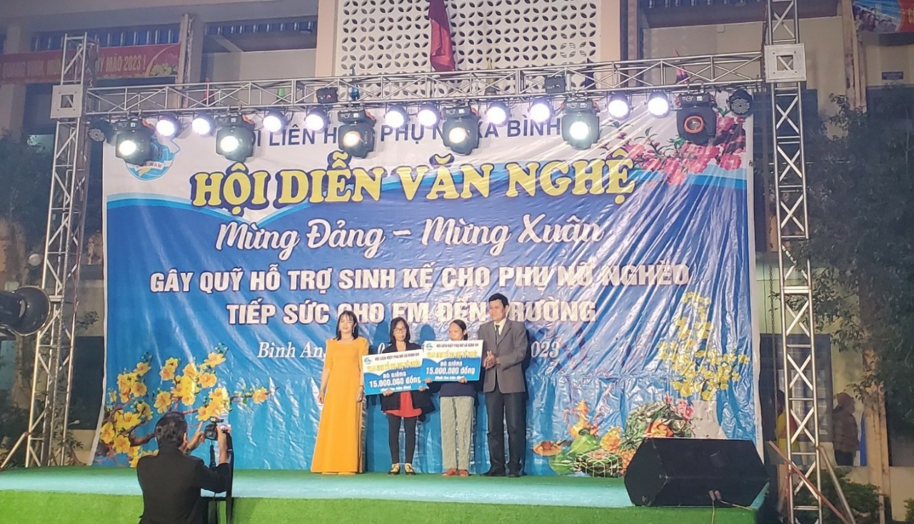 Dịp này, Hội LHPN xã cũng đã trao biểu trưng hỗ trợ sinh kế 2 con bò giống cho 2 hộ phụ nữ nghèo trị giá 15 triệu đồng/con và trao 8 suất học bổng cho 8 em học sinh có hoàn cảnh khó khăn trị giá 1 triệu đồng/em.