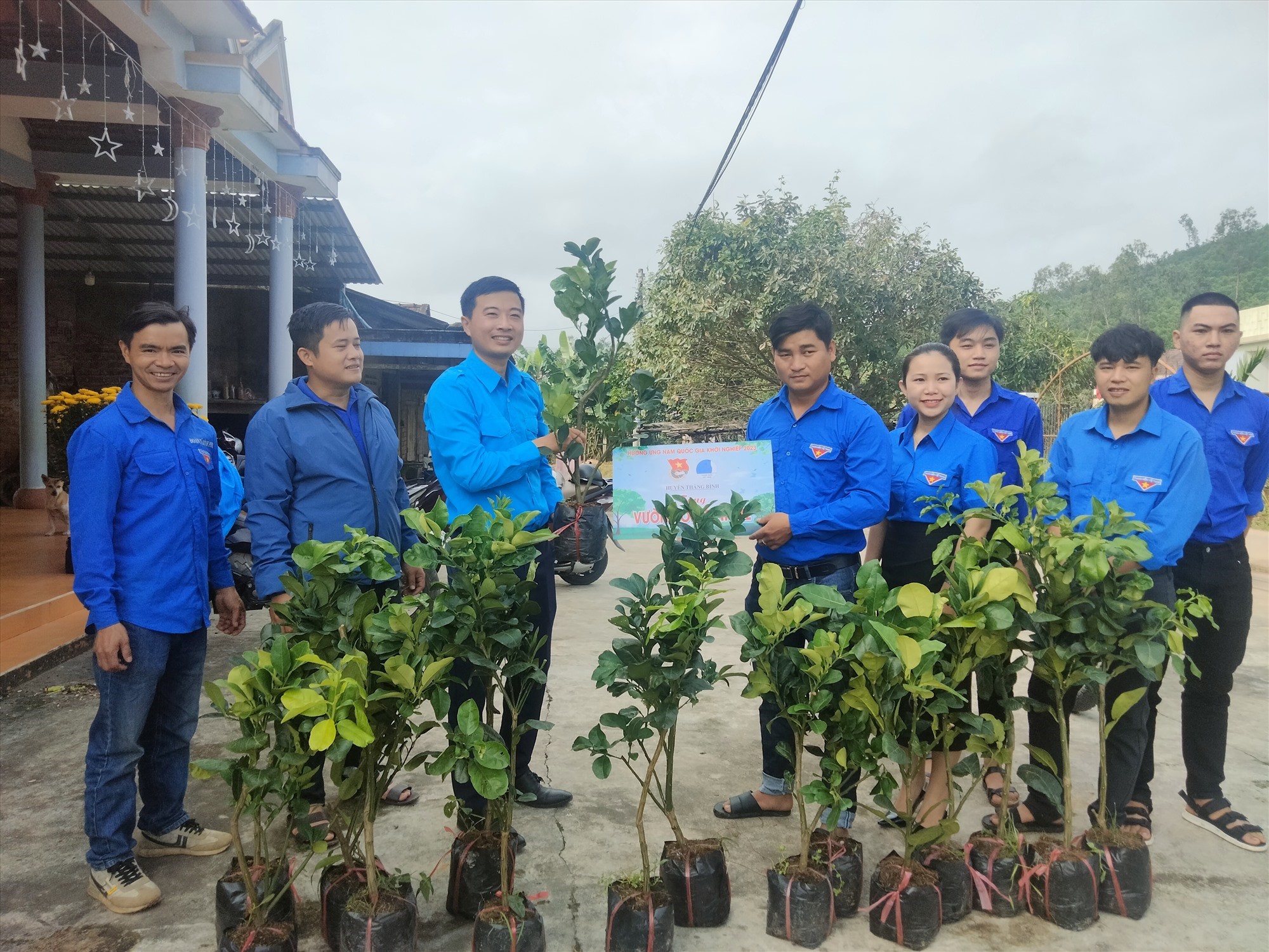 (Ảnh: Huyện đoàn Thăng Bình tặng vườm ươm sinh kế cho thanh niên)