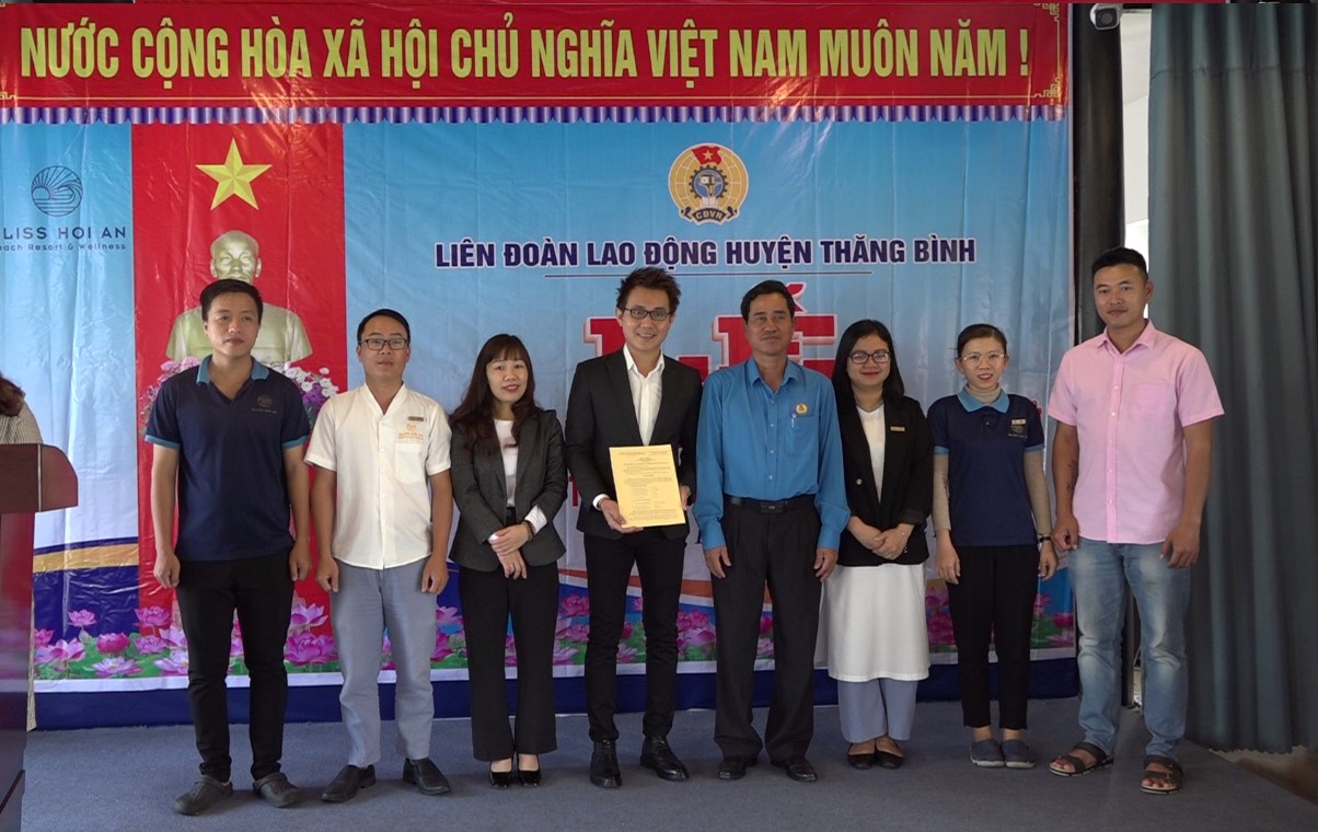 Tại buổi lễ, Ban Thường vụ LĐLĐ huyện Thăng Bình đã công bố và trao Quyết định kết nạp 97 đoàn viên, Quyết định thành lập CĐCS và Quyết định chỉ định Ban Chấp hành lâm thời Công ty TNHH Làng biển nhiệt đới Hội An gồm 5 đồng chí.