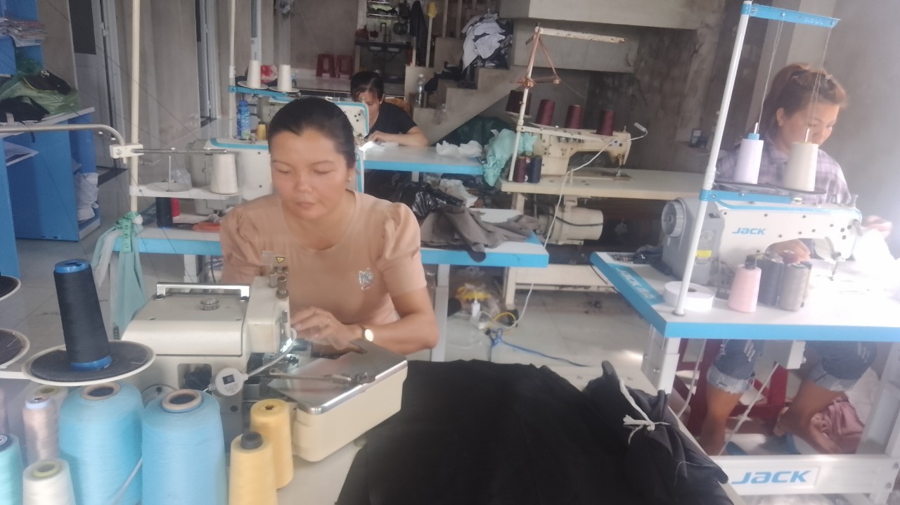 Có được số vốn trên, chị luôn trăn trở, suy nghĩ phải làm gì để giúp gia đình vượt qua khó khăn trước mắt. Nhờ thành thạo nghề may, bước đầu chị mua máy may và nhận hàng gia công làm tại nhà. Quen dần với công việc, chị nhận thêm hàng cho các chị em trong xóm nhận lại cùng làm với chị, tuy tích góp được số vốn ít ỏi nhưng cũng không đủ để trang trải cho gia đình. Với quyết tâm thoát khỏi cảnh nghèo, qua trao đổi, đề đạt nguyện vọng với các chị cán bộ Hội, chị được Hội LHPN xã đứng ra tín chấp cho chị vay thêm 50.000.000 đồng từ nguồn vốn vay của Ngân Hàng Chính sách xã hội huyện. Với số tiền này, chị mạnh dạn mua thêm 5 máy may mới để gia công được nhiều sản phẩm hơn, đồng thời cũng để tạo điều kiện cho các chị em khó khăn trong xóm đến làm để kiếm thêm thu nhập. Chồng chị cũng về quê phụ việc cùng chị, chăm lo cha mẹ già, con nhỏ và tìm cách đầu tư canh tác hiệu quả trên mảnh đất cha mẹ để lại. Một thời gian sau, khi tích lũy được số vốn kha khá, chị tiếp tục mua thêm máy và nhập thêm nhiều hàng gia công hơn. Nhờ đó, cơ sở của chị đã tạo công ăn việc làm ổn định cho hơn 10 chị em trong xóm với mức thu nhập bình quân mỗi chị từ 5 - 7 triệu đồng/tháng. Bên cạnh đó, với những chị em yêu thích nghề may nhưng không đủ điều kiện học nghề đều được chị đào tạo miễn phí, vừa học vừa làm từng bước một, khi vững tay nghề nếu có nguyện vọng thì có thể làm công luôn cho xưởng.