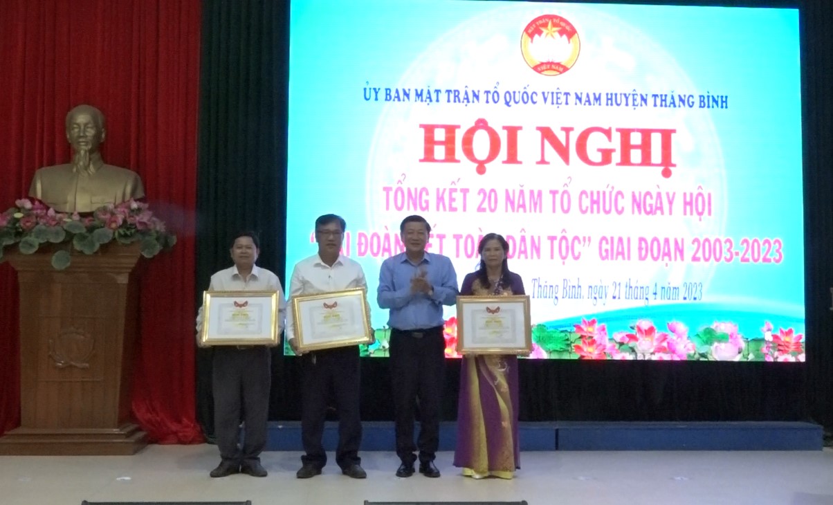 Dịp này, 3 tập thể được Ủy ban MTTQ Việt Nam tỉnh tặng bằng khen; 23 tập thể, 23 cá nhân được UBND huyện và Ủy ban MTTQ Việt Nam huyện tặng giấy khen có thành tích tiêu biểu tổ chức ngày hội Đại đoàn kết toàn dân tộc giai đoạn 2003 – 2023.