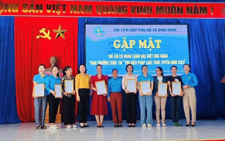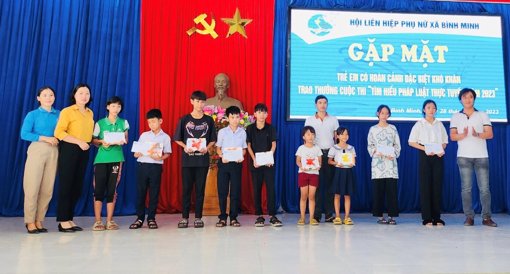 Được biết, Cuộc thi “Tìm hiểu pháp luật trực tuyến năm 2023” do Hội LHPN xã Bình Minh, huyện Thăng Bình phát động từ đầu tháng 6 nhằm hưởng ứng tháng hành động quốc gia về bạo lực gia đình năm 2023. Hội thi được tổ chức trực tuyến với nội dung xoay quanh các kiến thức về Luật phòng chống bạo lực gia đình, Luật hôn nhân và gia đình, Luật bình đẳng giới,… với sự tham gia của đông đảo hội viên phụ nữ. Ban tổ chức đã chấm chọn và trao giải cho 11 hội viên có kết quả cao tại cuộc thi với 1 giải nhất, 2 giải nhì, 3 giải ba và 5 giải khuyến khích.