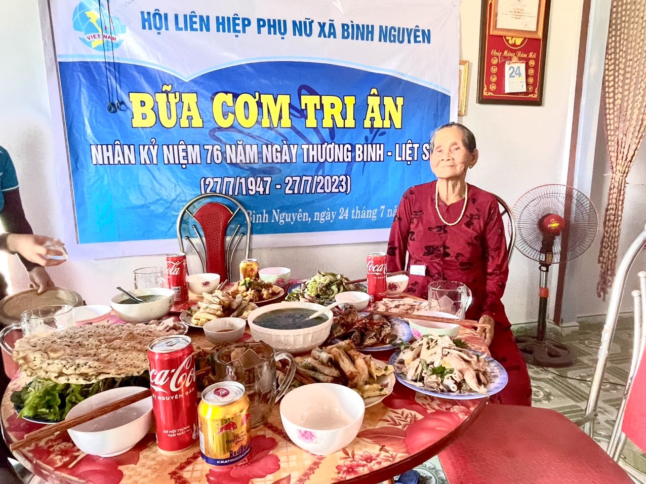 "Bữa cơm” là món quà nhỏ của cán bộ, hội viên, phụ nữ nhằm tri ân công lao của các thế hệ đã chiến đấu, hi sinh xương máu vì độc lập tự do của Tổ Quốc. Cũng nhân dịp này, Hội LHPN các xã, thị trấn đồng loạt ra quân dọn vệ sinh…tại các nghĩa trang liệt sỹ xã. Đây là dịp để giáo dục thế hệ trẻ về truyền thống yêu nước, kiên cường, bất khuất của lớp lớp cha anh đi trước, bồi đắp tình yêu quê hương, thể hiện đạo lý "uống nước nhớ nguồn", ghi nhớ công ơn to lớn của các anh hùng, liệt sỹ, người có công với đất nước.
