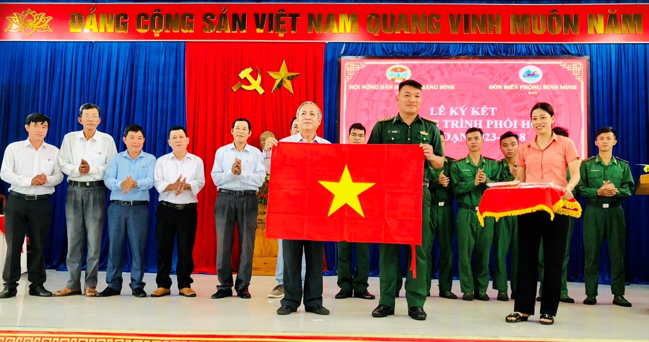 (Ảnh: Hội Nông dân huyện trao 100 lá cờ Tổ quốc cho Đồn Biên phòng Bình Minh)