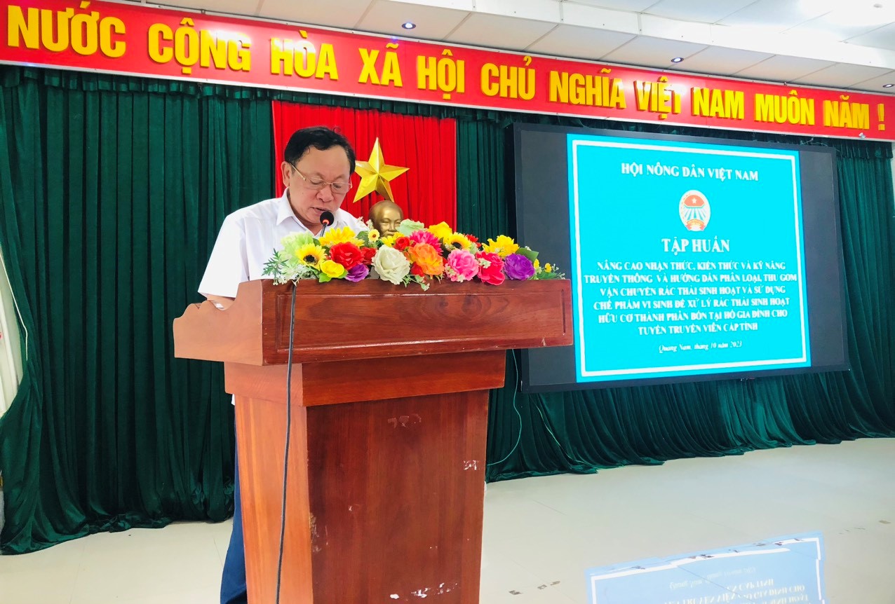 (Ảnh: Đồng chí Phạm Văn Thiện – UVBCH Trung ương Hội Nông dân Việt Nam, Giám đốc Trung tâm Môi trường nông thôn Trung ương Hội Nông dân Việt Nam phát biểu tại lớp tập huấn)