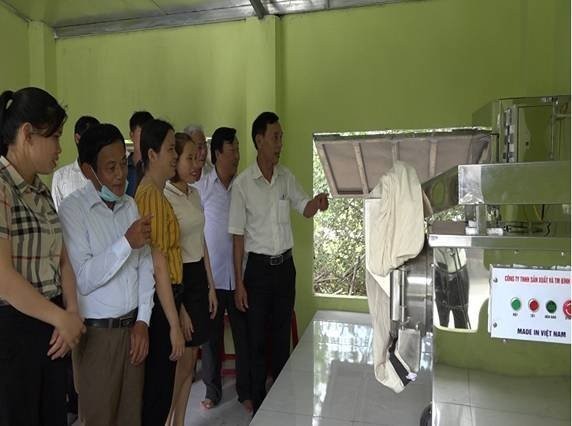 (Ảnh: Phòng KT-HT và Hội LHPN huyện nghiệm thu mô hình bột ngũ cốc sơ sở Ngọc Thuý, xã Bình Triều)