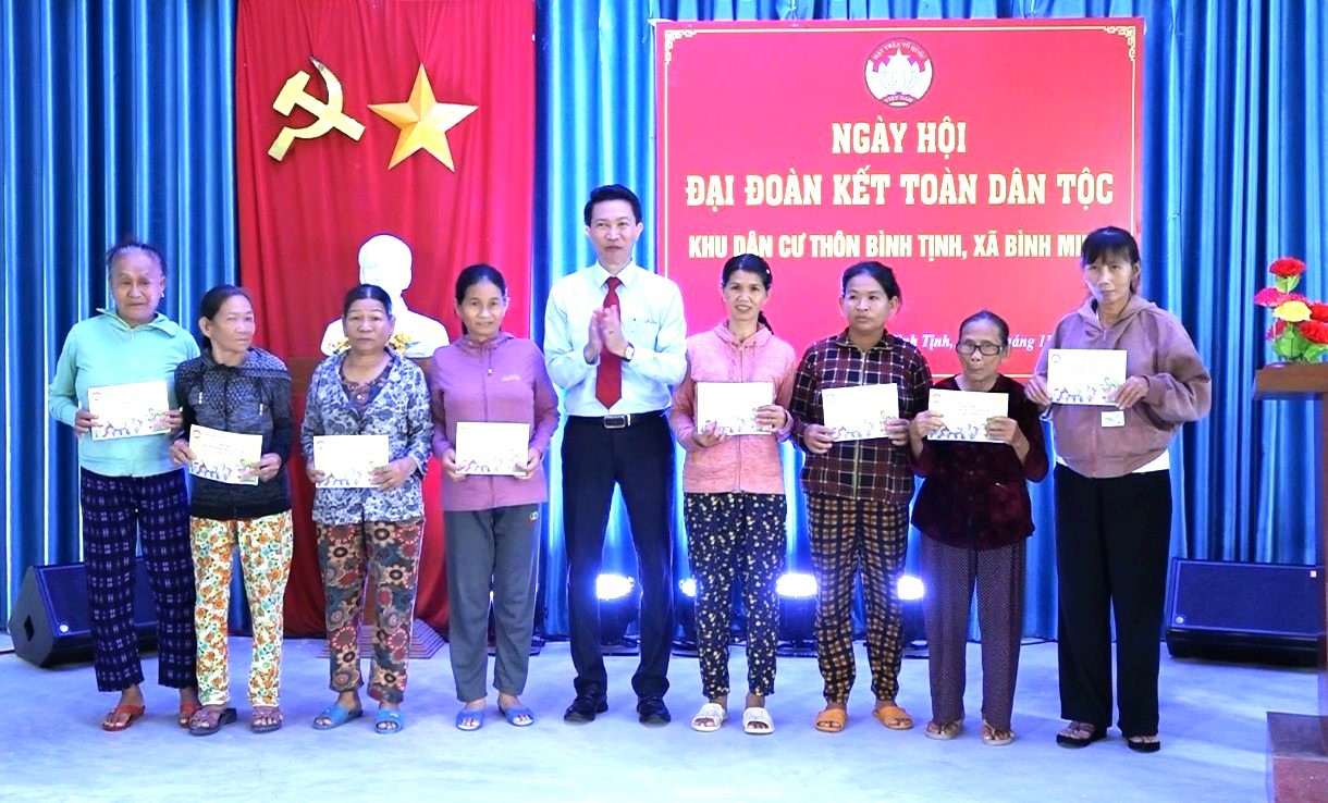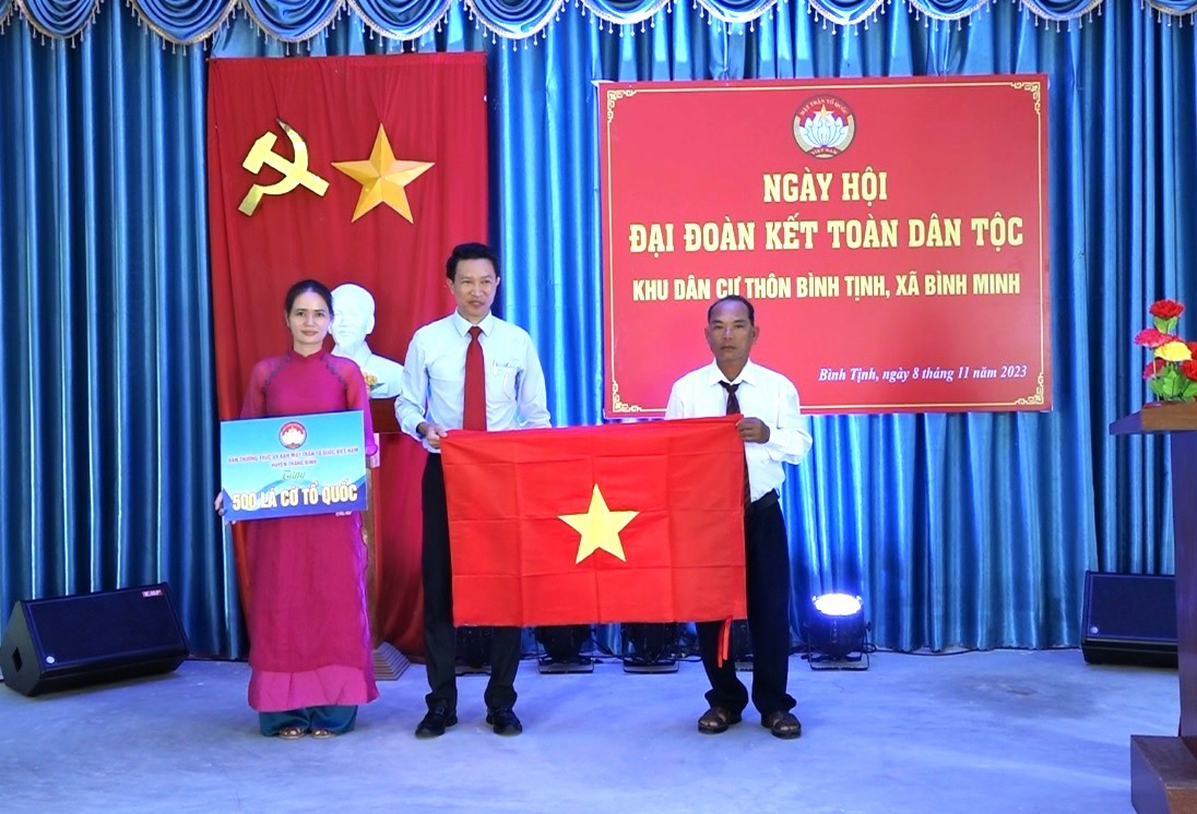 Dịp này, Ủy ban MTTQ Việt Nam huyện Thăng Bình trao tặng 500 lá cờ Tổ quốc cho ngư dân KDC Bình Tịnh và trao tặng biểu trưng xây mới 1 nhà đại đoàn kết (40 triệu đồng), trao 10 suất quà (500.000 đồng/suất) cho các hộ có hoàn cảnh khó khăn ở KDC.