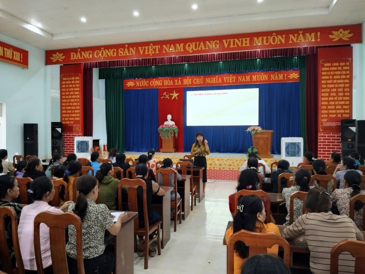 Tại 2 địa phương, Hội LHPN tỉnh đưa ra những câu chuyện từ thực tế cuộc sống để chị em phụ nữ trao đổi, bàn luận. Qua đó, nắm được thực trạng, hậu quả của bạo lực gia đình đối với xã hội. Bên cạnh đó còn nhận biết dấu hiệu, nguy cơ bạo lực gia đình, kỹ năng ứng xử khi có mâu thuẫn giữa các thành viên trong gia đình.