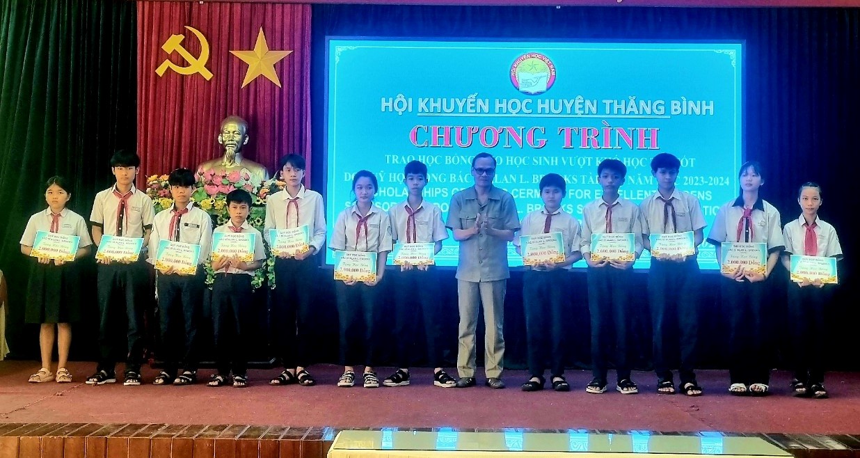 Cạnh đó, Hội Khuyến học huyện Thăng Bình còn huy động nguồn tài trợ từ các quỹ học bổng như: quỹ học bổng nhà giáo Triệu Tấn Hùng, Nguyễn Kim Thanh, bác sĩ Alan Brooks; vận động tổ chức COV trao 11 suất học bổng cho các tân sinh viên năm 2023 (20,6 triệu đồng/suất); ngoài ra, nhiều học sinh, sinh viên hoàn cảnh khó khăn còn được nhận tài trợ từ các chương trình học bổng SEEDS, Vòng tay Thái Bình, Tập đoàn Giáo dục Quốc tế Nam Việt,…