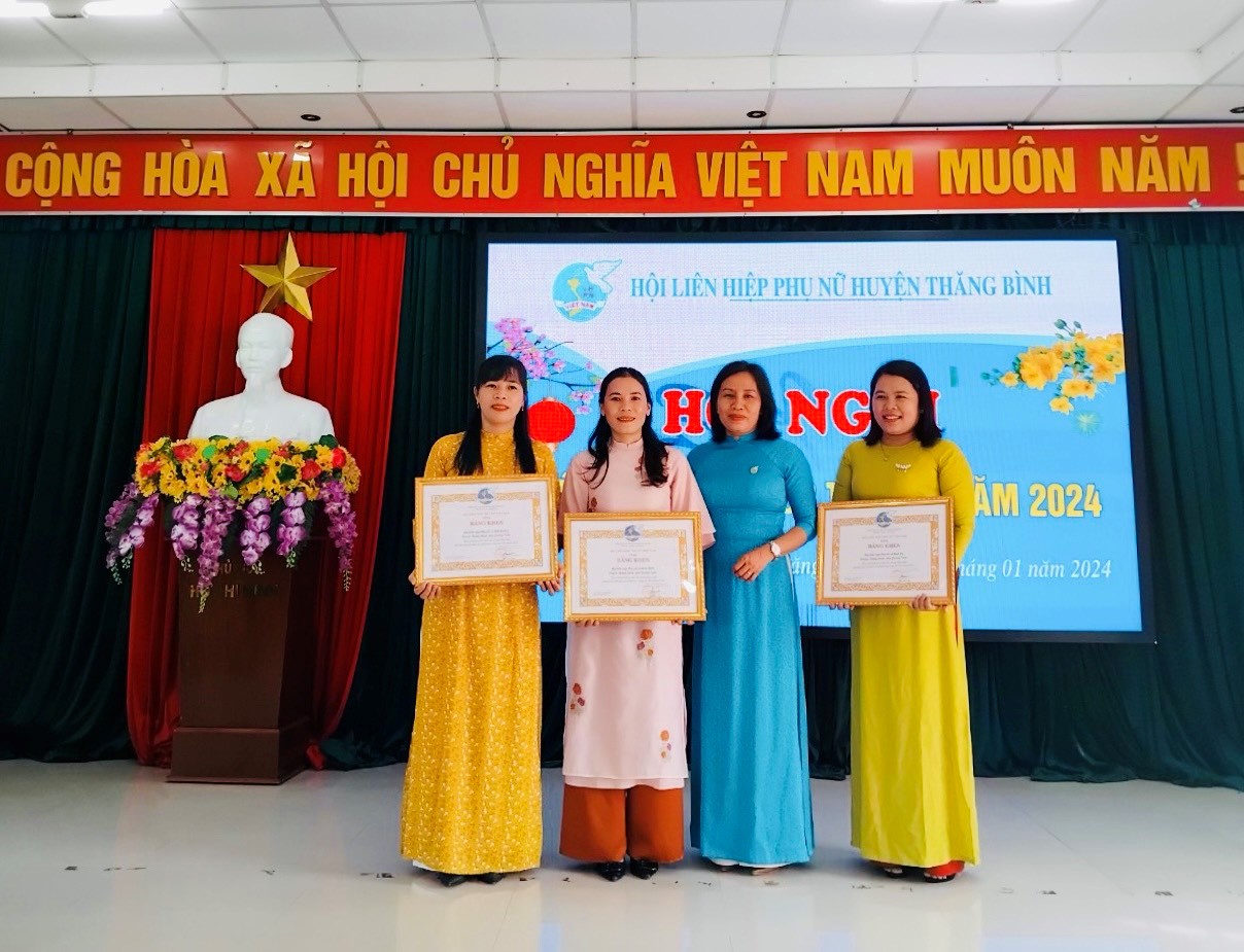 Tại Hội nghị, thừa uỷ quyền của TW Hội LHPN Việt Nam, Hội LHPN huyện trao Bằng khen cho 03 tập thể: Hội LHPN xã Bình Dương, Bình Minh, Bình Trị vì đã có thành tích xuất sắc trong thực hiện phong trào thi đua và nhiệm vụ công tác Hội năm 2023.
