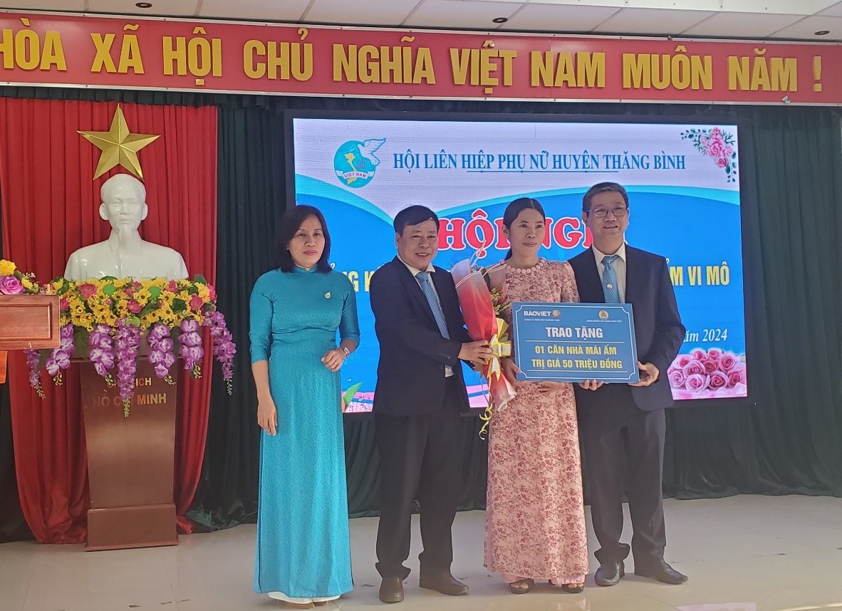 Dịp này, Công đoàn Tập đoàn Bảo Việt cũng đã trao biểu trưng hỗ trợ nhà mái ấm cho chị Bùi Thị Thanh Phượng, HVPN thôn Bình Tịnh, xã Bình Minh với số tiền trị giá 50 triệu đồng.