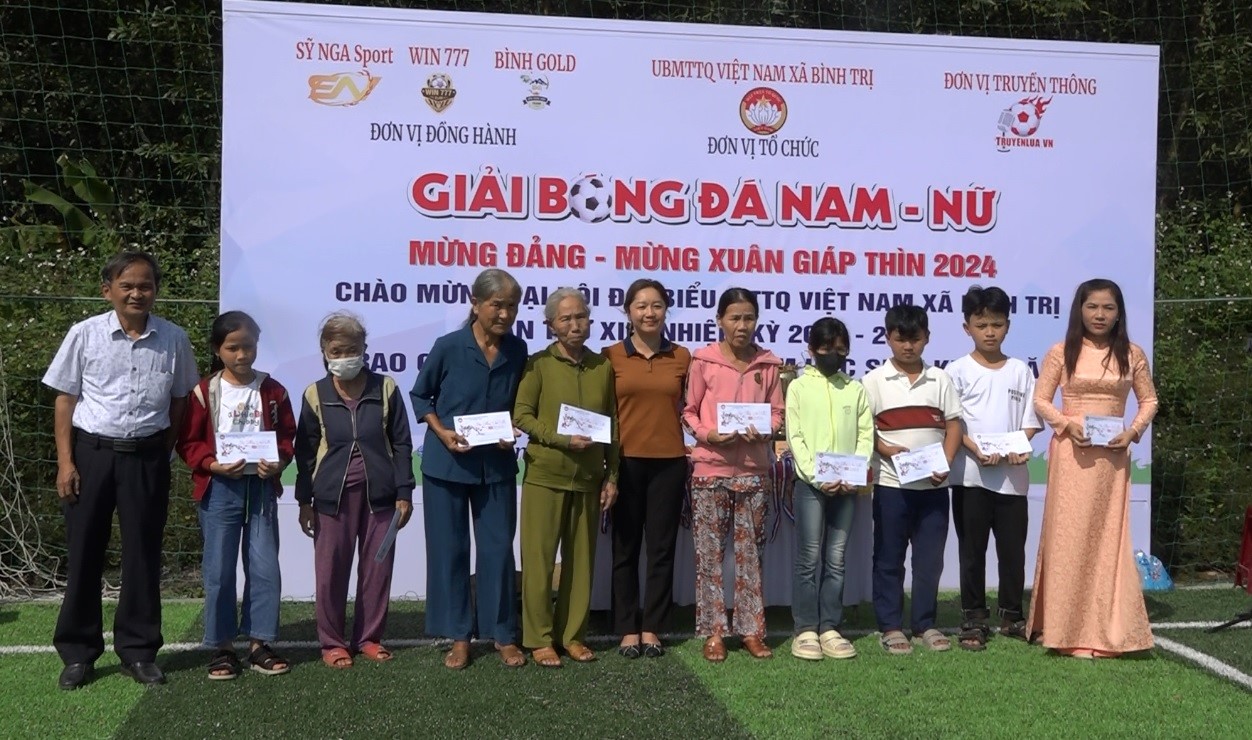 Tại giải bóng đá, thông qua sự ủng hộ của các cổ động viên, Ủy ban MTTQ Việt Nam xã Bình Trị đã trao 16 suất quà, mỗi suất 300.000 đồng cho các gia đình có hoàn cảnh khó khăn và các em học sinh vượt khó học giỏi của xã.