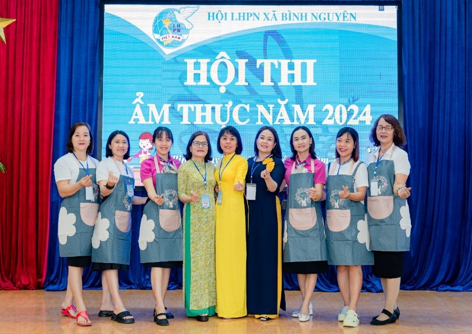 Tham dự hội thi gồm có các chị em phụ nữ ở 04 thôn và đơn vị nữ công công đoàn cơ sở xã Bình Nguyên chia làm 5 đội. Mỗi đội gồm 6 thành viên. Với định mức không quá 1 triệu đồng, các đội tự chọn nguyên liệu thực phẩm tươi sống, không chất phụ gia có hại cho sức khỏe, đảm bảo an toàn vệ sinh thực phẩm sao cho đảm bảo 1 mâm đủ 10 người ăn, gồm 4 món bắt buộc và 1 giỏ hoa trang trí. Trong quá trình dự thi phải mang găng tay, tạp dề, đảm bảo vệ sinh khu vực nấu ăn, các đội phải thuyết trình ý nghĩa từng món ăn và lẳng hoa trang trí.