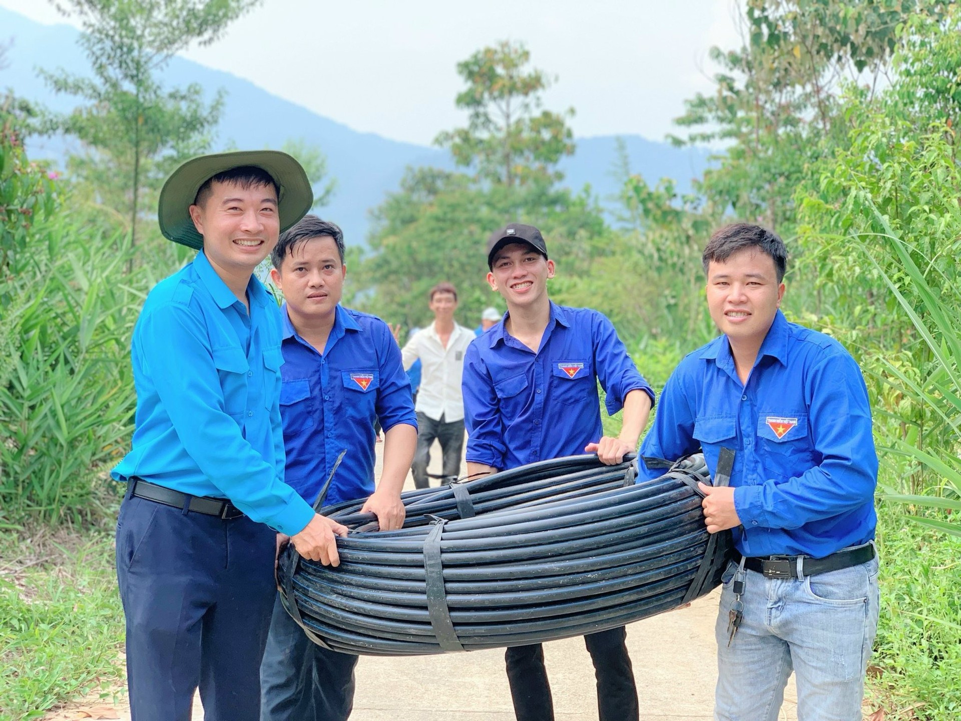 Theo đó, 50 đoàn viên thanh niên di chuyển hơn 4 tiếng đồng hồ bằng xe máy qua các đoạn đường đồi núi hiểm trở, vận chuyển theo gần 1.000m ống nước, bồn nước, đèn năng lượng mặt trời và dụng cụ nấu bữa ăn nhân ái. “Cùng ăn cùng ở với nhân dân nóc Ông Ngọc gần 2 ngày một đêm đã giúp đoàn viên thanh niên thấu hiểu phần nào khó khăn ở nơi không có điện lưới quốc gia, thiếu thốn nhiều thứ” – Đồng chí Vũ nói.