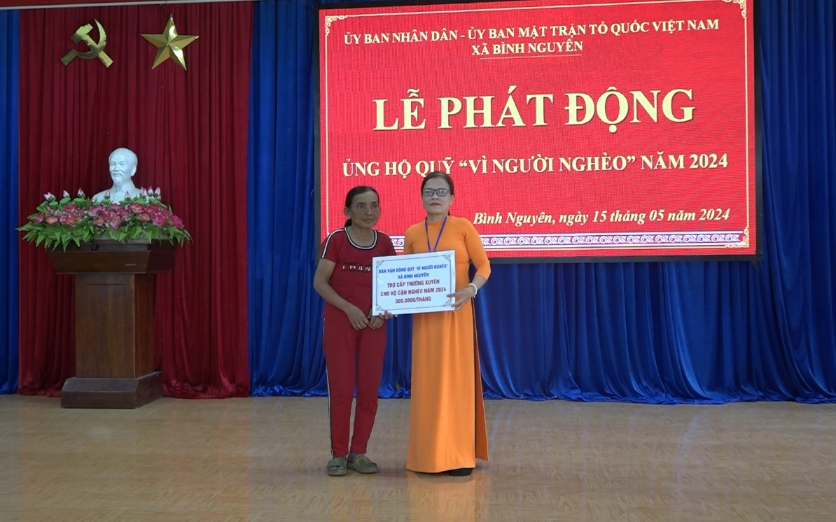 Tại lễ phát động, Ủy ban MTTQ Việt Nam xã Bình Nguyên đã kêu gọi cán bộ, công chức, viên chức, người lao động, các nhà hảo tâm, các tầng lớp nhân dân trong và ngoài xã tham gia ủng hộ Quỹ vì người nghèo của xã để có nguồn lực chăm lo cho người nghèo. Theo đó, đã vận động ủng hộ được hơn 76 triệu đồng. Dịp này, xã Bình Nguyên đã trao biểu trưng trợ cấp thường xuyên cho hộ cận nghèo, với số tiền 500.000 đồng/tháng.