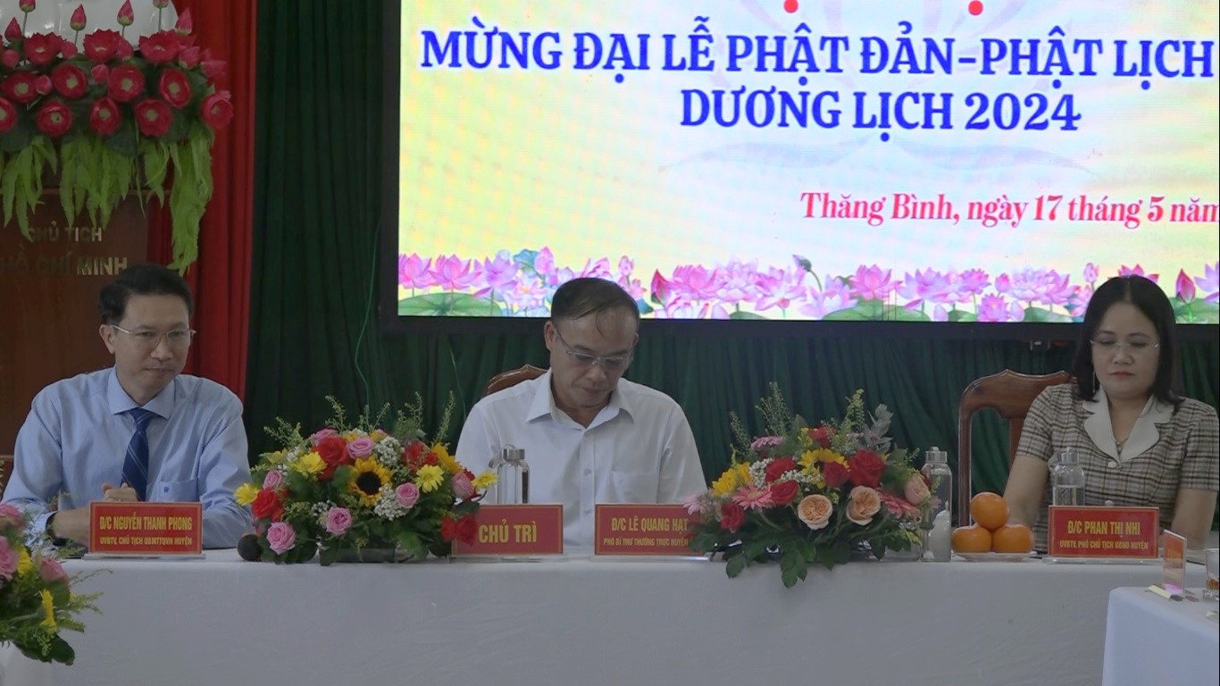 Lãnh đạo huyện Thăng Bình mong muốn Ban trị sự Giáo hội Phật giáo huyện tiếp tục động viên tăng, ni, cùng toàn thể bà con phật tử thực hiện đầy đủ trách nhiệm và nghĩa vụ của công dân, sống hài hòa, đoàn kết giữa Phật giáo với các tôn giáo khác, góp phần xây dựng quê hương Thăng Bình ngày càng phát triển.