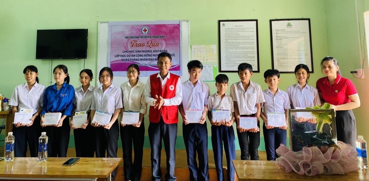 Tại chương trình, Hội Chữ thập đỏ huyện Thăng Bình đã trao 20 suất quà (500.000 đồng/suất) cho học sinh nghèo, học sinh có hoàn cảnh khó khăn thuộc dự án "Lớp học cộng đồng" huyện Hiệp Đức.