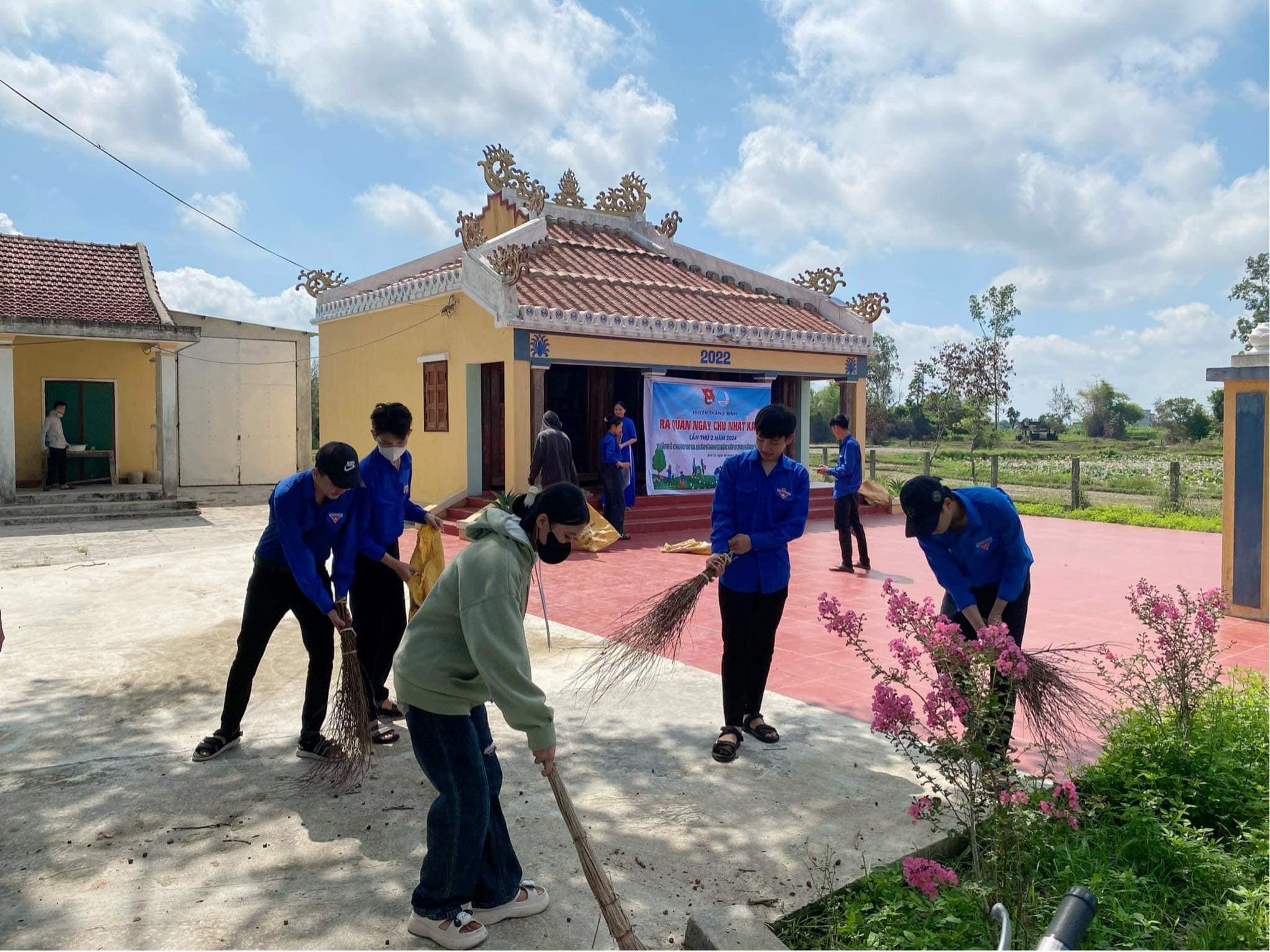 Tại đây các bạn ĐVTN đã tham gia dọn vệ sinh, sinh hoạt Đoàn và viếng hương khu di tích lịch sử cấp tỉnh, dọn vệ sinh tuyến đường hoa thanh niên tại khu dân cư thôn. Thực hiện video giới thiệu khu di tích lịch sử cấp tỉnh tiền hiền Tộc Nguyễn Văn, làng Tuân Mỹ bằng tiếng Anh.