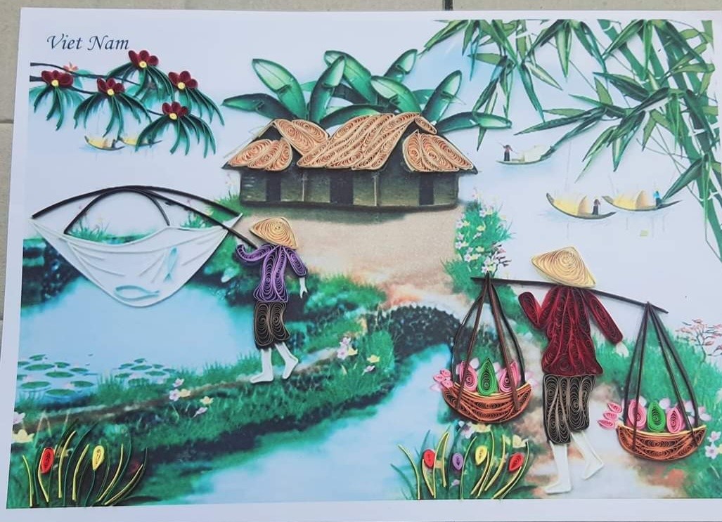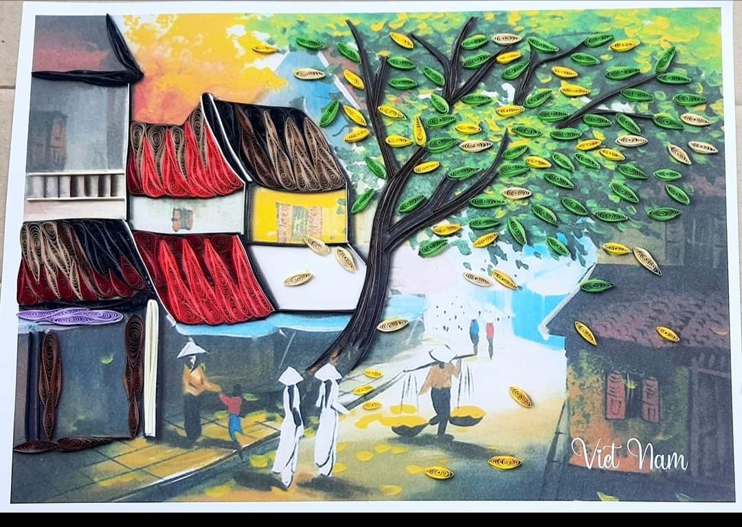 (Ảnh: Tranh giấy xoắn hẻm phố cổ và tranh làng quê Việt Nam)