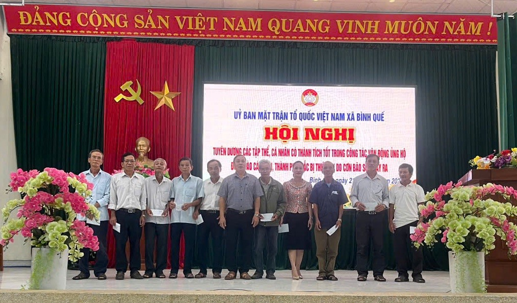 * Cùng ngày, Ủy ban MTTQ Việt Nam xã Bình Quế đã tuyên dương 2 tập thể, 12 cá nhân có thành tích tốt trong công tác vận động ủng hộ nhân dân các tỉnh phía Bắc bị thiệt hại do cơn bão số 3 gây ra.