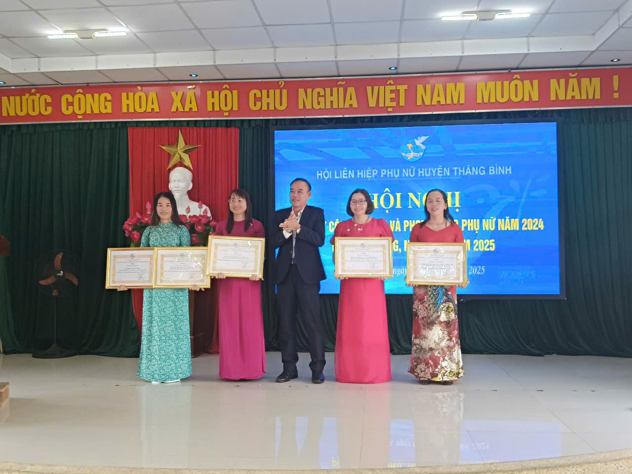 (Ảnh: Đồng chí Lê Quang Hạt – Phó Bí thư Thường trực Huyện uỷ trao Bằng khen của Trung ương hội và Hội LHPN tỉnh cho cá tập thể, cá nhân)
