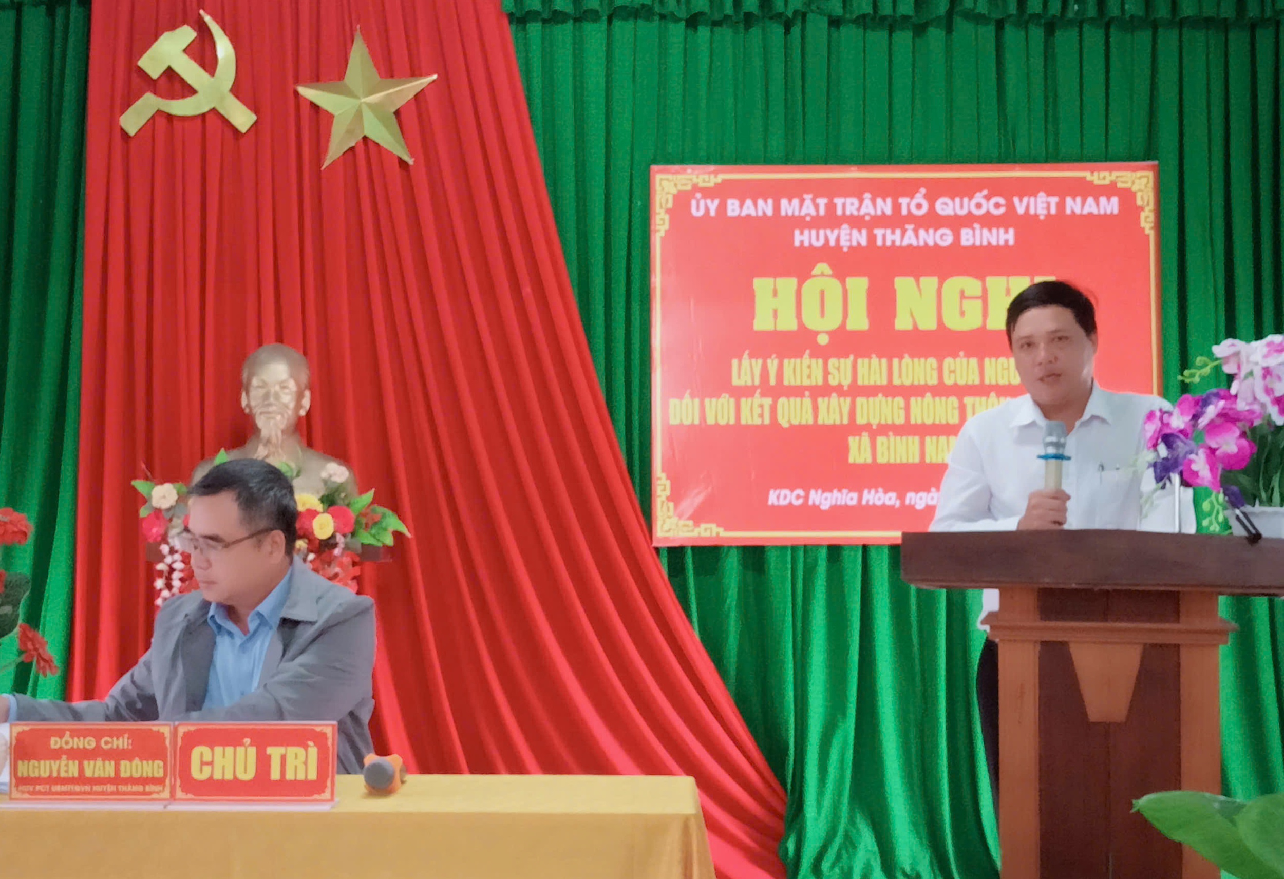 Tại xã Bình Nam, nhân dân thống nhất cao về những kết quả đạt được trong xây dựng NTM nâng cao ở xã Bình Nam. Theo đó, qua gần 2 năm thực hiện duy trì nâng chuẩn kể từ khi đạt chuẩn xã NTM, Bình Nam đã đã huy động hơn 282 tỷ đồng thực hiện các công trình như: mương thủy lợi ở thôn Tịch Yên, Thái Đông; mương thoát nước thôn Vịnh Giang; làm mới cầu dân sinh ở tổ 1, thôn Thái Đông; xây dựng điện chiếu sáng nông thôn; nâng cấp, sửa chữa trường Mẫu giáo Bình Nam; công trình cấp nước sinh hoạt; nâng cấp sân nền, mương thoát nước trạm y tế xã Bình Nam… tạo thuận lợi cho sản xuất, sinh hoạt và chăm sóc sức khỏe ban đầu cho nhân dân.