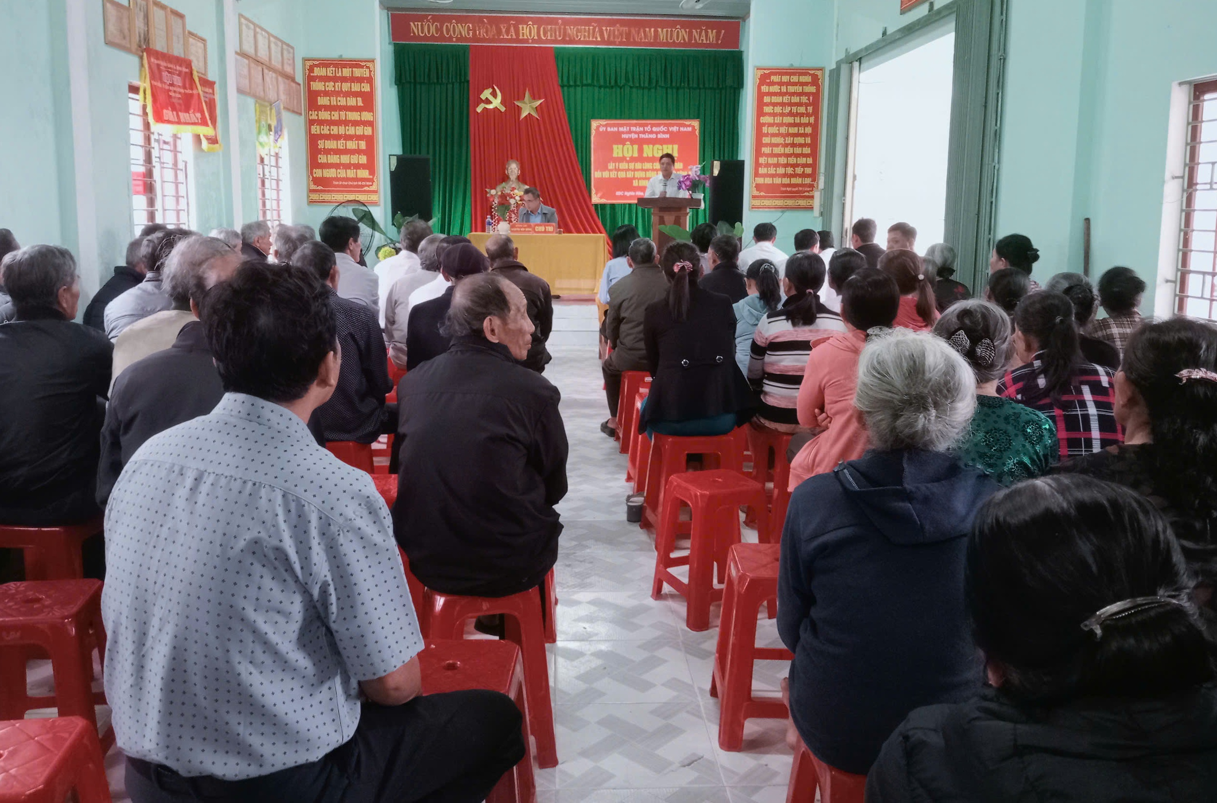 Quang cảnh hội nghị lấy ý kiến đánh giá sự hài lòng của người dân đối với kết quả xây dựng NTM nâng cao tại thôn Nghĩa Hòa, xã Bình Nam