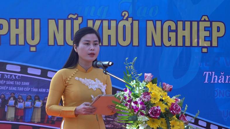 (Ảnh: Đồng chí Đặng Thị Bảo Trinh - Phó chủ tịch Hội LHPN tỉnh Quảng Nam phát động cuộc thi tại huyện Thăng Bình)