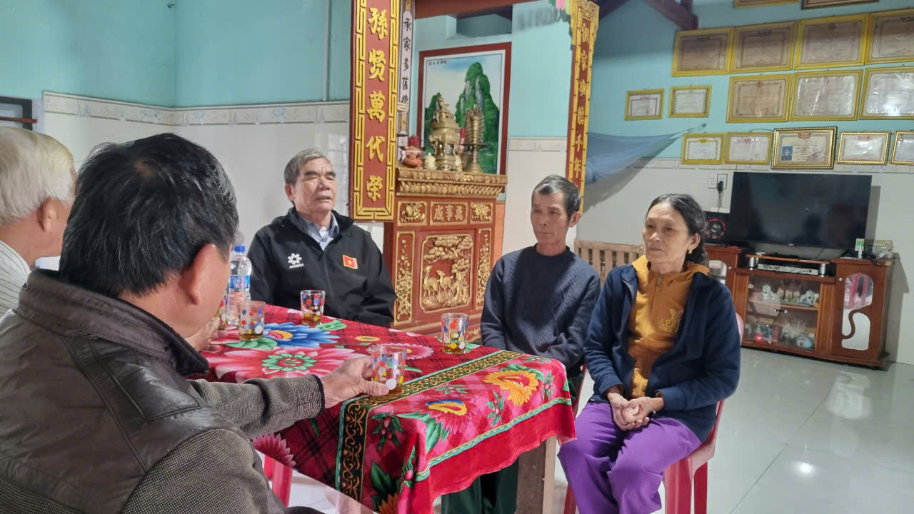 Cũng tại thôn Bình Túy, trong căn nhà còn thơm mùi sơn mới, bà Trần Thị Lợp (82 tuổi) hồ hởi khoe, từ nay các con và các cháu ở xa về chơi, bà không phải lo sắp xếp chỗ ăn, chỗ ngủ cho chúng nó nữa. Nhà rộng hơn 100 mét vuông, có 1 phòng khách, 3 phòng ngủ, với tổng kinh phí xây dựng gần 300 triệu đồng. Trong đó, Ngân hàng Vietinbank hỗ trợ 70 triệu đồng, nguồn hỗ trợ làm chòi chống bão 10 triệu đồng, còn lại gia đình vay mượn, bà con, hàng xóm giúp đỡ. Trao đổi với chúng tôi, bà Lợp vẫn còn nhớ như in cảm giác vui mừng trong ngày về ở trong ngôi nhà mới. "Có nhà mới kiên cố, chừ có mưa bão, chúng tôi cũng không phải lụi cụi khăn gói đi ở nhờ nhà hàng xóm hay đến nơi tránh trú bão tập trung như trước nữa.” - bà Trần Thị Lợp vui vẻ khoe.