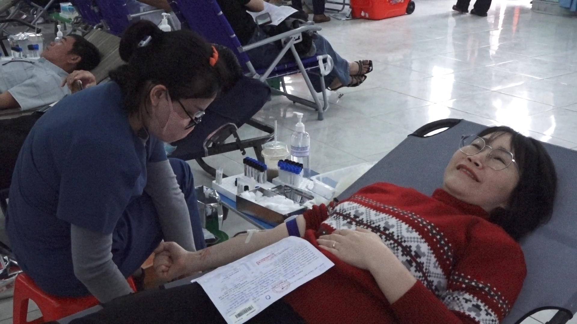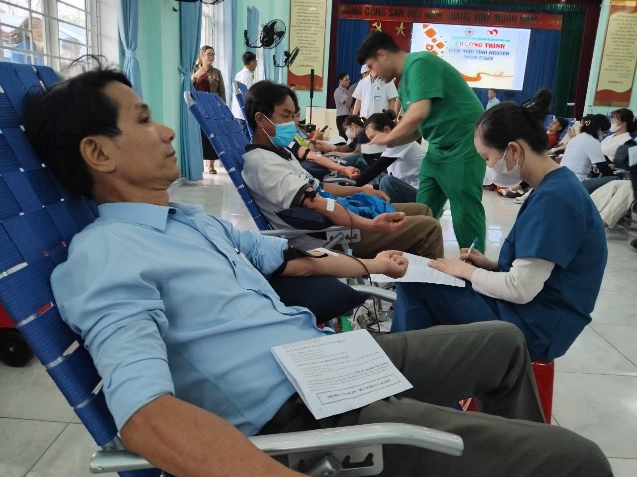 Quang cảnh chương trình hiến máu tình nguyện đợt 1/2025 tổ chức vào sáng ngày 4/4/2025.
