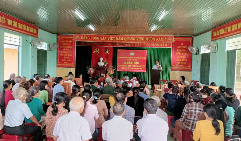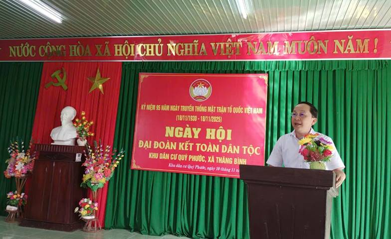 Phát biểu tại buổi lễ, đồng chí Nguyễn Văn Lượm - Bí thư Đảng ủy, Chủ tịch HĐND xã Thăng Bình mong muốn bà con Nhân dân tiếp tục phát huy tình đoàn kết, duy trì tình làng nghĩa xóm, giúp nhau phát triển kinh tế; phòng chống thiên tai; mong muốn người dân làm sao để ngày nào cũng là ngày đoàn kết. Từ nay đến cuối năm sẽ có hai sự kiện chính trị quan trọng đó là sáp nhập thôn và chuẩn bị cuộc bầu cử Đại biểu Quốc hội và HĐND các cấp nhiệm kỳ 2026 - 2031 mong bà con ủng hộ nhiệt tình.