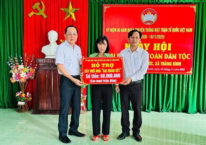 Tại ngày hội, lãnh đạo xã Thăng Bình đã trao tặng quà chúc mừng Ngày hội cho Khu dân cư; trao biểu trưng 60 triệu đồng hỗ trợ xây dựng nhà đại đoàn kết cho bà Nguyễn Thị Anh Hào và trao 02 suất quà cho các hộ nghèo, cận nghèo từ nguồn quỹ “Vì Người nghèo” của xã. Đồng thời Công an xã trao 10 suất quà cho gia đình có hoàn cảnh khó khăn từ nguồn vận động. Ủy ban MTTQ Việt Nam xã cũng đã khen thưởng cho 10 cá nhân tiêu biểu trong cuộc vận động và phong trào thi đua năm 2025. Ngoài ra, ngày hội còn tổ chức phát động phong trào thi đua năm 2026.