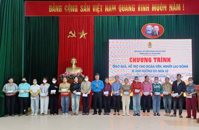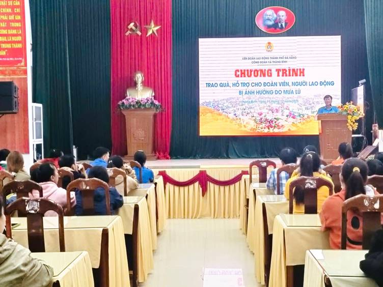 Thực hiện sự chỉ đạo và nguồn lực hỗ trợ từ Liên đoàn Lao động thành phố Đà Nẵng, Công đoàn xã đã tiến hành rà soát thực tế tại các công đoàn cơ sở trực thuộc; nhiều gia đình đoàn viên bị ảnh hưởng nặng do nước ngập, tài sản hư hỏng do đợt mưa lớn gây ra trên địa bàn. Trên cơ sở khảo sát này, Công đoàn xã xây dựng danh sách đề nghị Liên đoàn Lao động thành phố Đà Nẵng hỗ trợ. Tại chương trình, Công đoàn xã đã trao 79 suất quà, mỗi suất trị giá 2 triệu đồng, với tổng kinh phí 158 triệu đồng. Phát biểu tại chương trình, đồng chí Vũ Thái Sơn đã bày tỏ sự chia sẻ sâu sắc trước những thiệt hại của đoàn viên và người lao động trong đợt mưa lũ vừa qua; việc hỗ trợ là trách nhiệm và cũng là tình cảm của tổ chức Công đoàn đối với người lao động. Đồng chí nhấn mạnh, Công đoàn xã Thăng Bình sẽ tiếp tục đồng hành, tăng cường nắm bắt đời sống, kịp thời đề xuất các biện pháp chăm lo, bảo vệ quyền và lợi ích chính đáng của đoàn viên và người lao động.