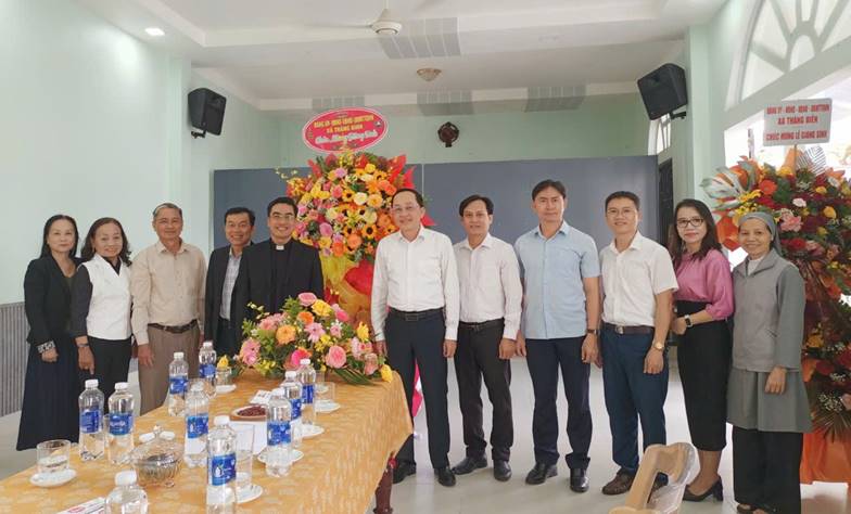 (Đoàn công tác do Đ/c Đoàn Thanh Khiết - Phó Bí thư Đảng ủy, Chủ tịch UBND xã làm trưởng đoàn tặng hoa và Thư chúc mừng giáng sinh tại Giáo xứ Hà Lam)
