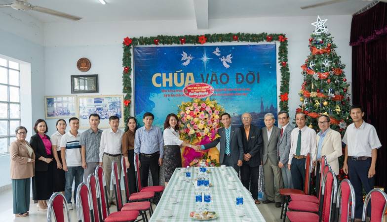(Đoàn công tác do Đ/c Võ Thị Đoan Trang - Phó Bí thư Thường trực Đảng ủy làm trưởng đoàn tặng hoa và Thư chúc mừng giáng sinh tại Nhà thờ Tin Lành Hà Lam)