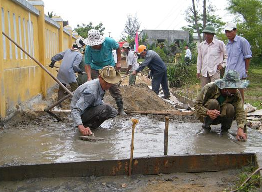 Trong quá trình tổ chức thi công chị Hoa đã bàn với tổ liên hệ xin UBND thị trấn Hà Lam số đất thừa ở chợ Hà Lam cũ, thuê xe đổ nền đường. Trong số 4 cống qua đường đã được định vị, chị bàn chọn 1 cống nơi xung yếu để xây kiên cố. Còn lại chị liên hệ mua ống bi của ngành thủy lợi về lắp đặt để giảm chi phí công trình. Chị Hoa đề nghị chia thành hai tốp thi công. Một tốp được thuê thợ nề. Một tốp khác do bà con trong tổ đảm nhận, được giao cho một thanh niên có tay nghề đảm trách phần kỹ thuật thi công. Việc làm này đã tạo được không khí thi đua sôi nổi, hào hứng. Chỉ sau 8 ngày thi công, mặt đường bê tông cơ bản đã hoàn thành. Và sau gần 1 tháng tuyến đường hoàn chỉnh, có lề, và barie bảo vệ. Bà con hai bên đường thấy đẹp đã trồng thêm cây che mát, xây dựng tường rào cổng ngõ khang trang.