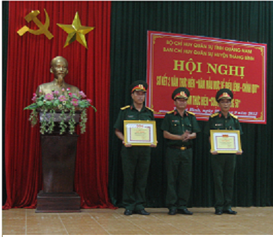 Đại úy Nguyễn Trọng Vương (Bên trái) nhận giấy khen đạt giải nhất